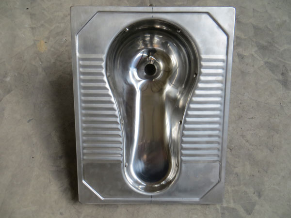 目前普遍使用的不銹鋼蹲便器,腔底平坦,小便區(qū)有積水坑,腔面形狀復雜,有倒坡段,沖水阻力大,排污效果差,耗水量大。
